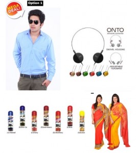 Buy: Osia Italia Casual Shirts Rs. 354 ( Gift Voucher: TS300 ) | ONTO Light Headphone Rs. 99 ( GV: NTH200 )| FMS Car Dashboard Fragrances Spray Rs. 124 ( GV: FMSC196 ) | D&Y Pack of 2 Printed Sarees Rs. 599 ( GV: DYPS200 )