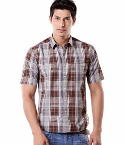 SnapDeal is selling John Players Brown-Grey Checkered Shirt for Rs. 390. This casual shirt is made of cotton.