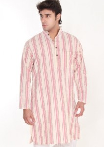 A smart kurta for men from Zion! Made from 100% cotton, this regular-fit kurta has full sleeves, mandarin collar and is knee length.