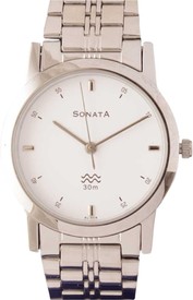 The Sonata Economy men’s watch has a sleek watch face with a traditional analog dial that is round in shape. The watch sports a neat and plain dial with hour and minute markers and a three hand movement. A bracelet style metal strap adds an innate simplicity to the watch design and appears stylish and suave on any masculine wrist.
