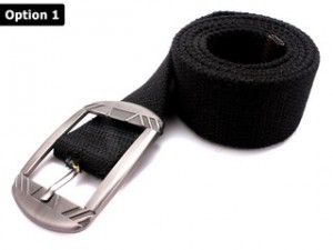 Canvas belt with leatherette trims and Zamak pin buckle.