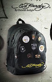 • Polyester mesh outer shell • Gun metal zipper pulls • Padded shoulder straps • Adjustable strap with shoulder pad • Interior pockets • Large main compartment • Front utility compartment • Rhinestone embellishments.