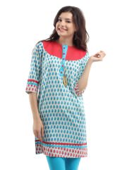 • Design: Printed • Sleeves: Half Sleeves • Collar: Round neck.