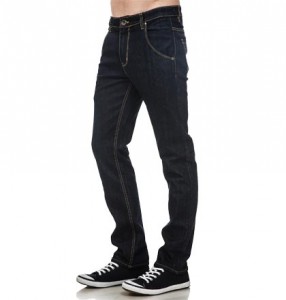 The denims are in slim stretch fit with mid-rise waist. It has slim leg type and narrow leg opening. slim stretch fit denimThe full length jeans has dark blue rinse wash and is slim stretch fit. It features slant side pockets with stylized ticket pocket. The back pocket of the jeans has cut an sew detailing’s.
