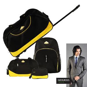 Package contents: Strolley Duffle Bag, Back Pack, Duffle bag, Travel Pouch & Graviera Suit Length.