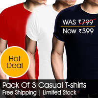 Slip into everyday style with this pack of three slim fit tees – Red, Deep Navy Blue and White. These basic tees look crisp and polished alone or under a sweater, cardigan or jacket!