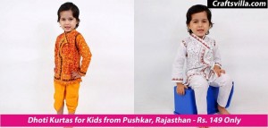 Now dress your little boy in this very cute Dhoti Kurta Angarkha and see the attention he grabs. Utterly adorable, this cotton item is perfect for your little one to wear on special occasions! These Dhoti Kurta/ Salwar kurta are made by artisans of Pushkar, Rajasthan.