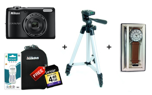 Buy: Nikon Coolpix L26 + 4GB Card + Pouch + Rechargeable Battery & Charger + United Colors of Benetton Watch | More deals on Mobiles, Digital Cameras, SLR Cameras & Tablets