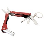 • Precision Needlenose plier • Wire Cutter • Spring Loaded Hinge • Handy Key Ring • Serrated Cutting Blade • Slotted Srew Driver with Bottle Opener • Philips Screw Driver • Knife Blade • Super Bright LED light with Battery • Durable nylon pouch