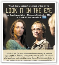 Look it in the Eye is an independent documentary about two families who have been confronted by mental Illness. Their intimate stories of pain, resilience and recovery are portrayed in this powerful film.
