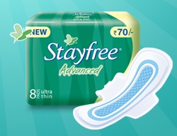 Stayfree Advanced is the new product from Stayfree. It has a unique soft touch cover that prevents skin irritation and a blue protection zone for the best ever protection from Stayfree.