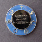 The Boniuk Center for the Study and Advancement of Religious Tolerance at Rice University invites you to wear this pin and make a commitment to the principles of tolerance, respect, and compassion for all humankind. The symbols are from several of the major world religions (“major” being defined mainly by number of adherents, not by “best” or “most important” or “truest”).