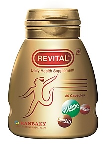 Revital is a balanced daily food supplement from Ranbaxy that has a combination of vitamins, minerals and ginseng. Ginseng is a herb that has been researched in various parts of the world where it is taken as food supplement for improving vitality of the body. This in combination of vitamins and minerals rejuvenates and strengthens body organs and helps maintain good health.