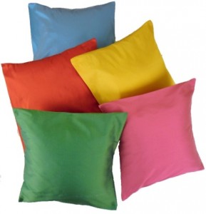 Cushions are made up of richly decorative shuttle-woven fabrics made in colored silk threads with intricate patterns that include a selection of flowers and other natural images. Dimensions: 16 inch X 16inch.
