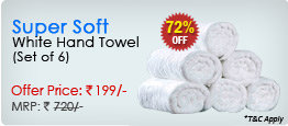 Set of Six Hand Towel is ideal for all the family and is very durable. the prices are most competitive. The product has high water absorbing capacity which makes whole experience majestic! Size: 21 Inches x 14 Inches.