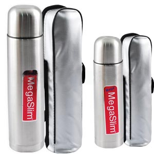 A double-walled vacuum flask combo of 1 Ltr and 500 ml . The vacuum in between the double stainless steel walls locks the temperature of the liquid in and your beverage remains hot or cold for many hours.