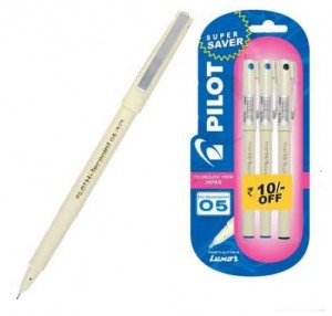 Pilot Hi Tech 05 pen with unique 3-dimple tip technology for precision writing, 0.5 tungsten carbide ball for consistent line width of 0.3 mm, writing length – 1500 meters, 3 times that of any needle point gel pen.