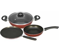 • Induction base. • Glass Lid. •Cooks some foods faster and crisper. • Needs some oil or water to prevent sticking.