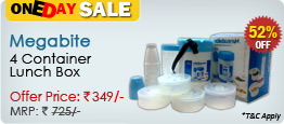 • Attractive innovative new design – Half turn locking mechanism • 4 Round Containers • 1 Detachable Water Bottle • Microwave friendly • Leak-proof and air tight containers • Ideal for Outings, Camping, Picnic. • Keeps food warmer for 4-5 Hours.