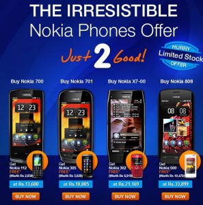 • Buy Nokia 700 Rs. 13600 Get Nokia 112 Free (worth Rs. 2859).