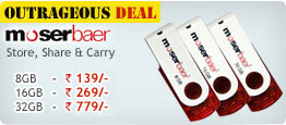 Now store, share and transfer your audio and video files in a compact portable device. With capacities ranging from 8GB to 32GB, the Moser Baer range have one million rewritable cycles and its advanced technology circuitry has data retention feature of upto 10 years.