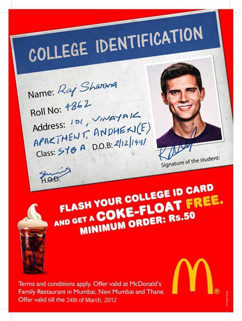Offer: https://www.savemoneyindia.com/wp-content/uploads/2012/03/show-your-ID-and-get-a-free-coke.jpg
