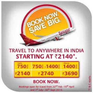SpiceJet: Big Sale (Valid for travel between 19th Feb to 15th Apr, 2013 and 1st Jul to 30th Sep’13)
