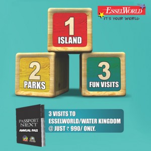 • It is an annual pass which lets a guest enjoy EsselWorld or Water Kingdom 3 times in a year at any combination of his/ her choice starting at Rs.990 only that’s less than the price of two tickets.