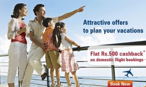 Book a domestic flight at makemytrip.com, make your payment using your ICICI net banking, credit or debit card and get a cashback of Rs. 500 flat.