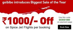 Book a SpiceJet Flight with Goibibo and get FLAT Rs.1000/- OFF on per booking.